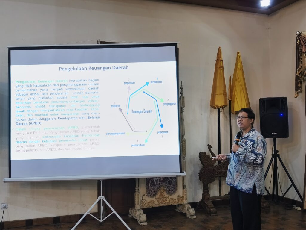 Kemudian, Dr. Mulyanto, M.E. menyampaikan materi “Analisis Potensi Daerah untuk Optimalisasi Pendapatan Asli Daerah (PAD)”, yang menekankan pentingnya tata kelola keuangan daerah yang transparan dan akuntabel, serta sinergi antarwilayah dalam memperkuat struktur ekonomi lokal. Materi kedua dibawakan oleh Dr. Rutiana Dwi Wahyunengseh, S.Sos., M.Si., yang menyoroti pentingnya penerapan Evidence-Based Policy dalam pembangunan daerah.